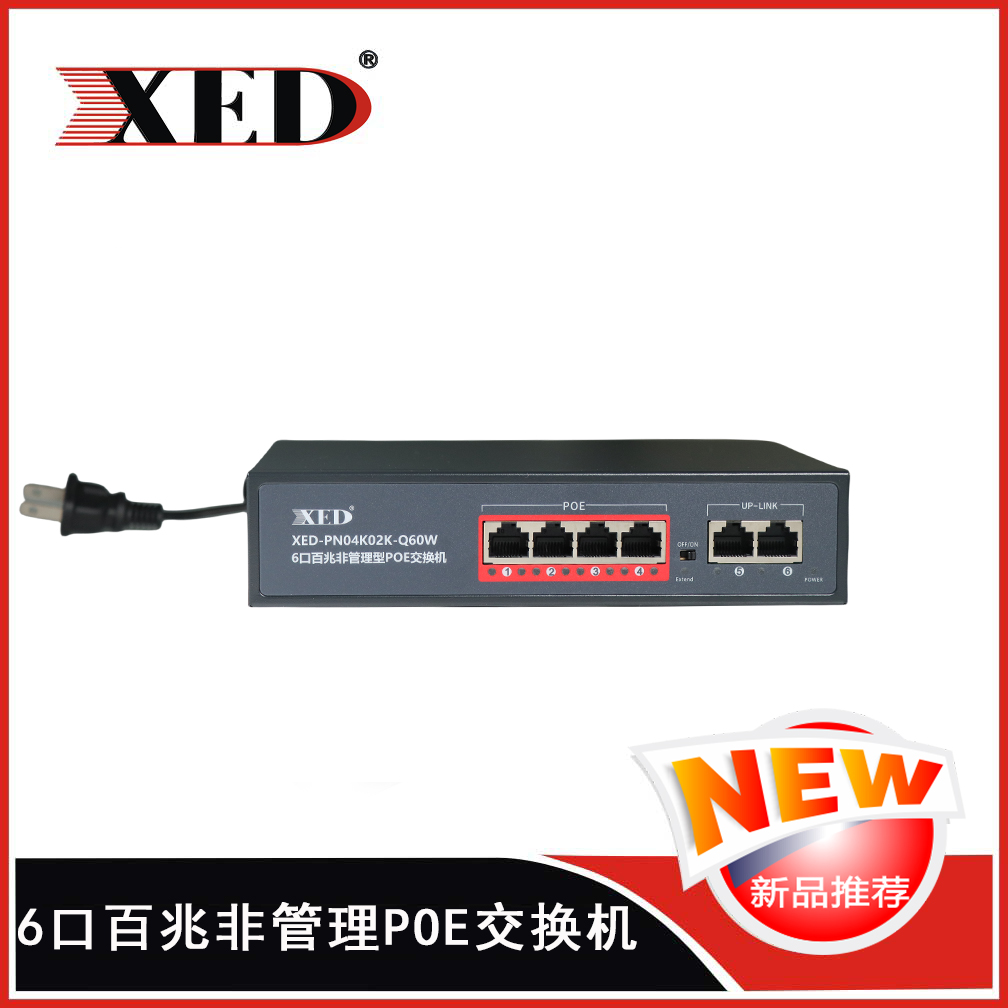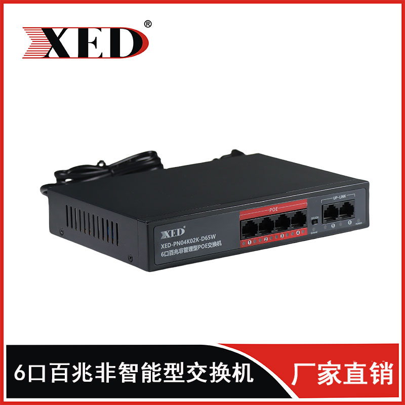 XED-PN04K02K-D65W是一款高性能的百兆POE交換機(jī),可通過網(wǎng)線為無線AP,攝像頭等PD設(shè)備提供最大單端口30W...