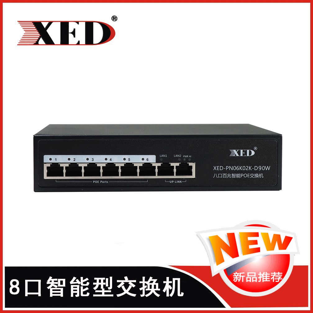 XED-PN06K02K-D90W 6+2 百兆非管理型 POE交換機(jī) 可通過網(wǎng)線為無線AP,攝像頭等PD設(shè)備提供最大單端口30W...