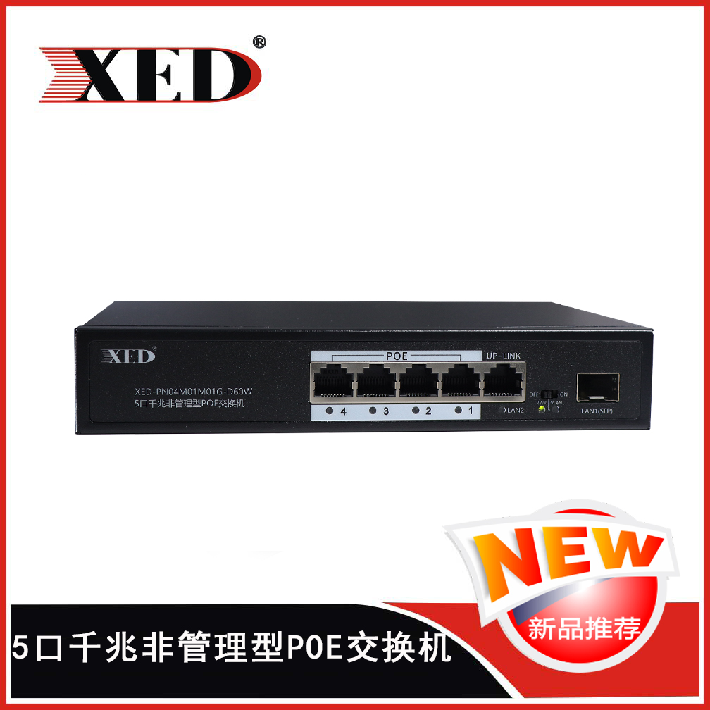 XED-PN04M01M01G-D60W 4+1千兆非管理型POE交換機(jī),提供4個(gè)10M/100M/1000M自適應(yīng)端口,1個(gè)上行10M/100M/1...