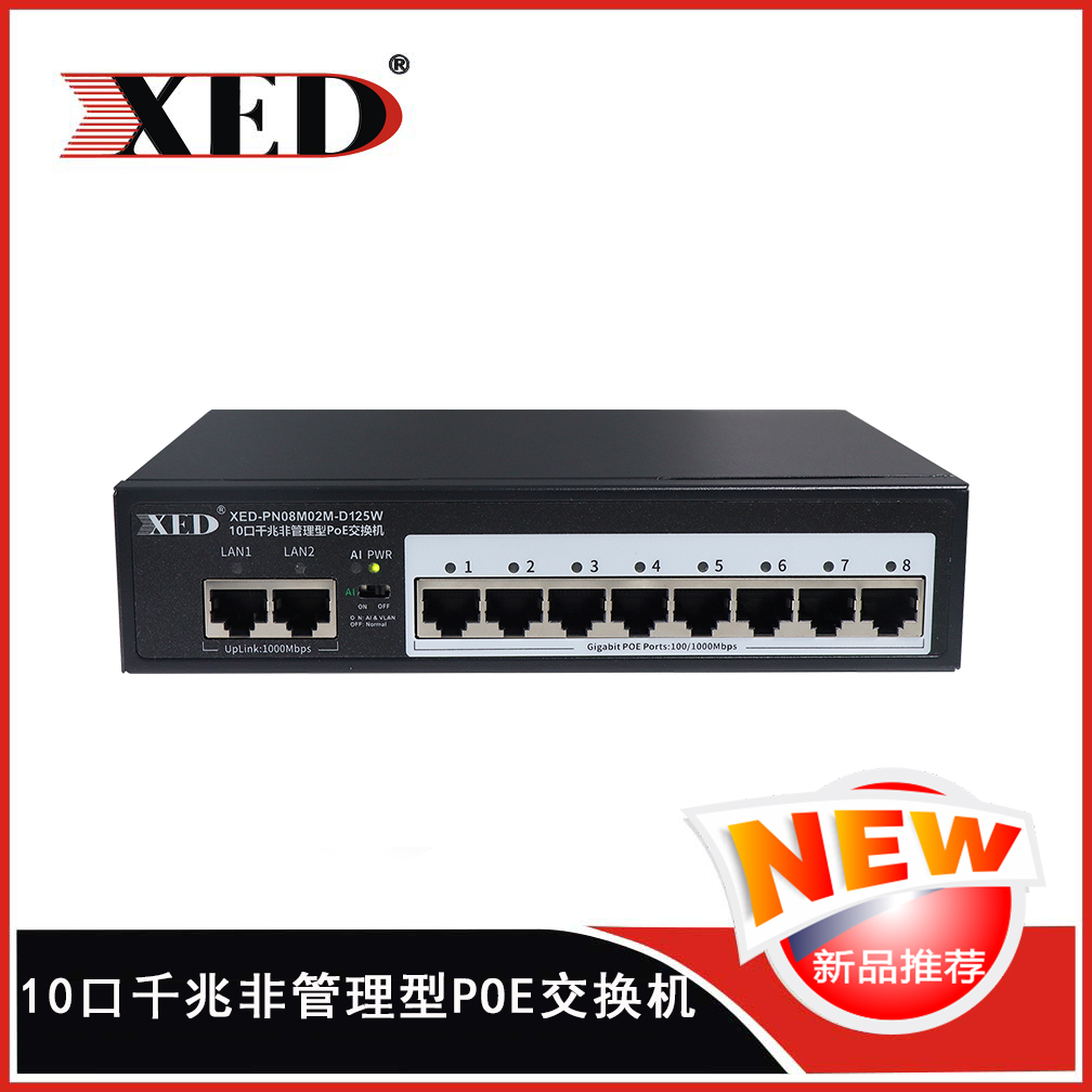 XED-PN08M02M-D125W是一款高性能的全千兆POE交換機(jī),可通過網(wǎng)線為無線AP,攝像頭等PD設(shè)備提供最大單端口...